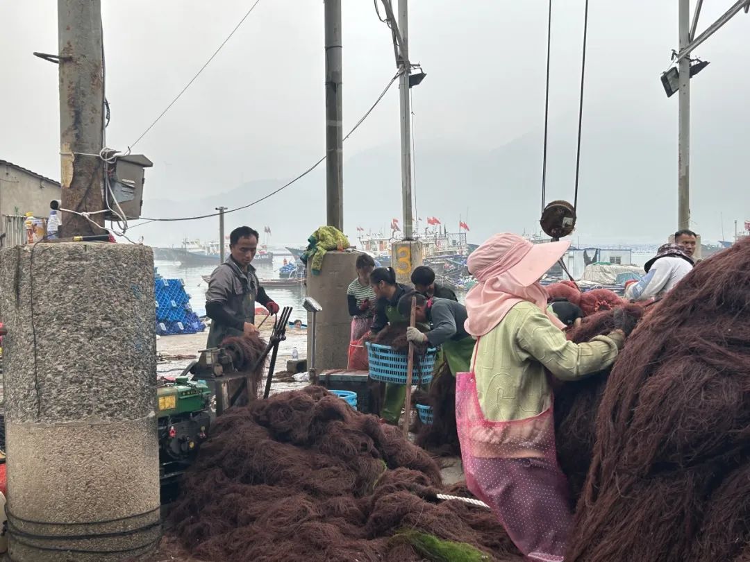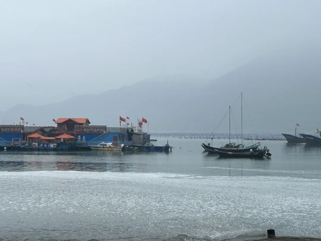 清晨,辽阔的海面伴随着清凉的海风和阵阵的小雨。考察团一行共同来到了如山水油墨画般的养殖海域。即使海面能见度不足,但也难掩大家的热情。